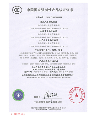 我司智能家居電源技術在業內處于領先地位,產品定位高起點、高標準、高要求,嚴格按照ISO9001:2015標準的要求建立質量管理體系的同時持續(xù)有效地進行規(guī)范化運作,不斷致力于產品的開發(fā)與制造,面向市場,服務客戶,以客戶百分百滿意為目標,靈活高效地為客戶提供全面的電源解決方案。公司產品通過CCC UL Fcc TUV CE CB UKCA SAA等相關檢驗認證,產品防護等級達到IP67或IP68。